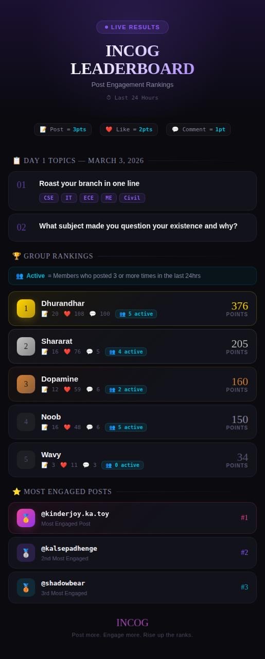 Day 1 is done. Dhurandhar owns the board. 💪 Think your tribe can take the crown? Prove it tomorrow. #Incog #Leaderboard