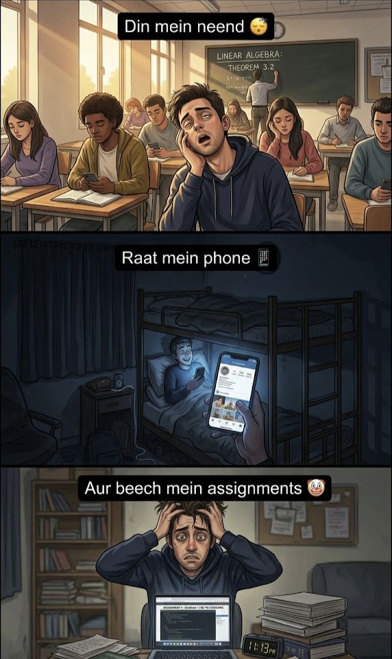 βDin mein neend π΄ Raat mein phone π± Aur beech mein assignments ka torture π€‘β