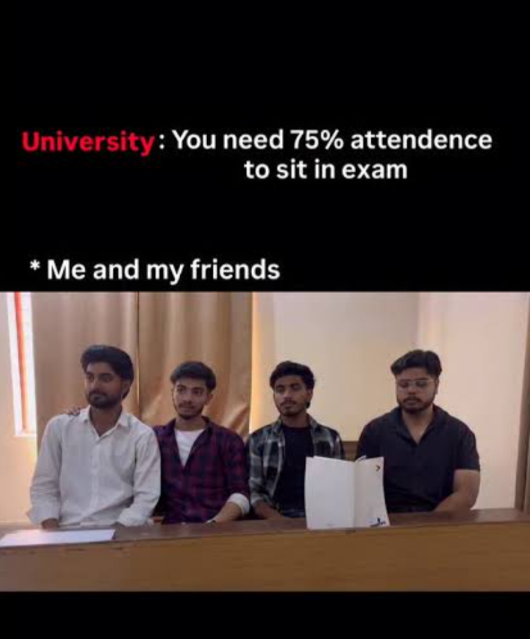 75% criteria be like..... Maut ka sir pe madrana during exams ,😭