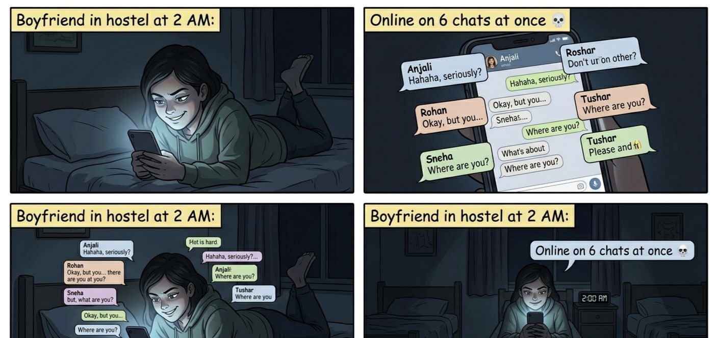 “2 AM in hostel: ‘good night baby ❤️’ sent to 5 people ” 💀